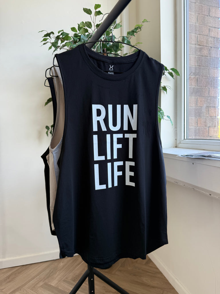 RUN, LIFT , LIFE, TANK - BLACK