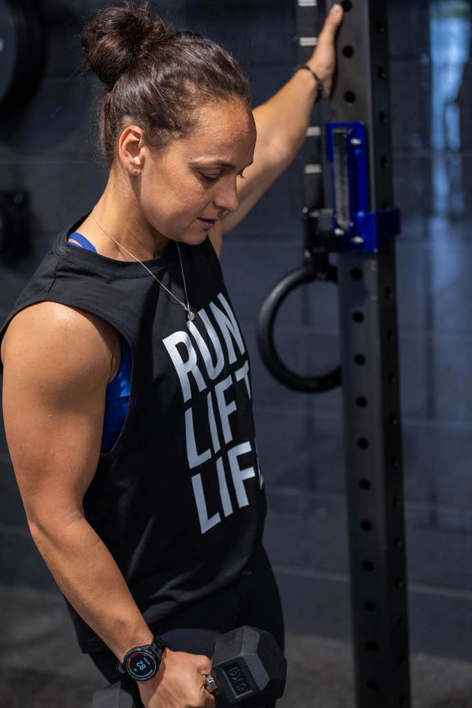 Train in gear trusted by the best. Our Run Lift Life Tank is a full-length performance staple — designed with a cotton–spandex blend for unmatched softness and stretch. Worn and approved by CrossFit legend Emma McQuaid, so you know it’s built to perform.